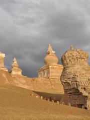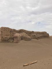 黑水城,西夏首都。被元朝占领,后明军攻破并废弃该城。1908年俄国人在多次探寻被当地牧民纷纷引入歧途后,终于绑了个蒙古土尔扈特部王爷并借此挖出了黑水城。这是近代中国几大考古发现之一。 城廓保存非常完好,包括两个城门的翁城。城内基本上是残瓦碎石了。黑城、大同城、怪树林是一个景区。每年九十月因胡杨林变黄而成为旺季,景区有摆渡车到各景点。淡季没有摆渡,私家车可以进入。 站在这里看着荒凉的戈壁,想到刚刚路过的大同城,真是无限感慨。