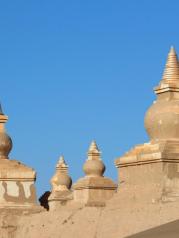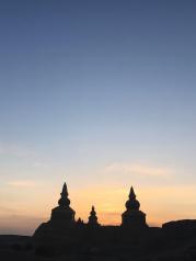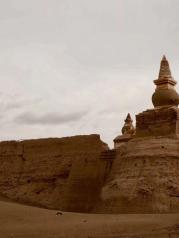 黑水城这座沉寂了千年的城堡,是西夏残留下的古城遗址,也是目前全国保存最完好的西夏古城。现在看到的黑城是苍凉而又壮阔,古城的规模只是依稀的轮廓,剩下的最多就是无垠的黄沙。这个黑城遗址现在看过去更像是一座沙漠上的废墟,满眼望去都是戈壁、沙山,还好这里还有几座保存完好的佛塔,地上有很多碎陶片,还能看出古城昔日的繁华,很有历史的沧桑感和穿越感。