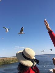 居延海这个地方真的是非常的美!到居廷海去一定要安排好时间,建议到那里去看日落。带孩子去玩也是很好的选择,因为那里的海鸥很多很多。会飞到你的头上手上身上的觅食,一点也不怕人。
