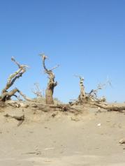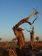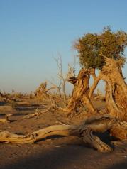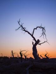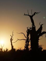 在额济纳旗胡杨林景区内,有一片曾经生长着茂密胡杨林的辽阔地带。如今这里已成为胡杨“陈尸”遍野的沙场。在这片古老的原始地貌,冥冥之中,渗透出一股狰狞恐怖的气氛,令人毛骨悚然。