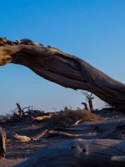 额济纳胡杨林本是一片曾经茂密的胡杨林因河水改道水源断源造成大面积枯死,枯木形态各异,奇形怪状而得名“怪树林"。仿佛在向世人诉说对生命之水的渴望。