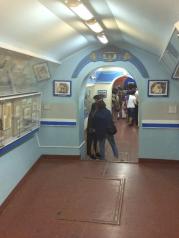 潜水博物馆的主题就是二战中战功卓越的一艘苏军潜艇,潜艇的一部分呢,被改造成了展厅,另一部分(主要是鱼雷舱和住舱),进行了原貌修复,重新向大家展示了潜艇当年的状态,还有蜡像模拟场景。总的来说还是值得一看的,潜艇博物馆是整个军事历史博物馆的一部分。 值得一提的是附近的景点显然更亮眼。一边是一个精致的东正教小教堂,正前方是无名火和海湾(一般都会有现役军舰停泊),另一侧是俄罗斯联邦武装力量太平洋舰队的司令部,门口有很多颗友谊树,都是各国舰艇来访时栽种的,其中也有中国军人栽种的哟~ 边上卖饮料的很漂亮