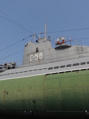 【海参崴C-56潜水艇博物馆】“C-56”号潜水艇曾荣获红旗勋章和近卫军称号,而今矗立在海参崴“太平洋舰队的战斗荣誉纪念碑”广场上。据苏俄官方介绍,二战中,这艘C-56潜水艇的官兵英勇善战,共击沉敌舰10艘,重创4艘。进入潜艇,舱内各种机械、设备、物件近似于原样。艇舱两壁贴满照片、图片和文字材料,似乎有意炫耀着苏俄海军昔日的辉煌。