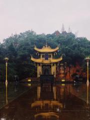 下山后游览的景点,峨眉山报国寺的寺院很大,香火鼎盛,可以在寺院门口看到云游的僧人。园中鲜花绽放,在细雨中清香阵阵。可以在寺内法物流通处请平安回家。去峨眉山,一定不要错过报国寺,千百年来峨眉山开山第一寺,皇家寺院,门票8元,有不少佛教导游讲解,帮你了解佛教知识。