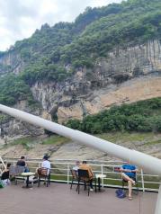 自驾恩施野三峡一日游攻略:上午船游清江大峡谷,下午滑索登恩施之巅;分享一下我们的具体行程:早上自驾到野三峡的清江大峡谷景区,特别要吐槽的是,就算在网上订票还要去售票处排队拿坐船的号码,售票厅很小没有空调,早上人很多,排队一会就热得一身汗,中间还有一些插队吵起来的,好不容易拿到号,还要排队才能进入景区登船,这又等了一个半小时,上船已经十点半了,乘船一小时就到了蝴蝶崖,没有下船直接再坐一小时返程,说实话清江景色尚可,就是景区管理不大行。 中午没来得及吃饭,立即自驾前往黄鹤峰林-恩施之巅景区,中途驾车半小时,山路崎岖。到景区门口快一点半了,然而几乎没什么人,直接很顺利取票就进去了,乘坐套票的滑索到达