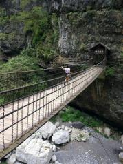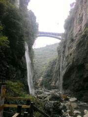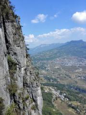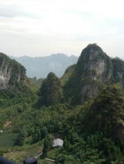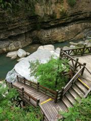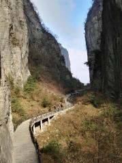 恩施市区航空路汽车站有到大峡谷的班车,班次很多。一个半小时到景区游客中心,那里有许多农家乐拉客的,当然保险点在携程上订好住宿为好。觉得住在女儿寨最好。我住在女儿寨下面的客栈游多多,条件没有女儿寨的好,远了一点点。但是,饭菜不错,特别是四楼的平台风景大赞! 一早到游客中心拿票,乘坐景区交通车先去云龙地缝。沿着栈桥阶梯贴着深谷崖壁往下走,寒气逼人,不时被飞溅下来的瀑布泼洒到。。 往上因为垂直电梯在改造吧没开,爬上去则汗水淋漓,气喘吁吁。 我买了索道票可以省力些,走在绝壁长廊上,看绵延不绝的群山,赏青绿黄灿的田野,真不枉此行!