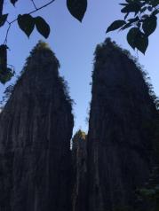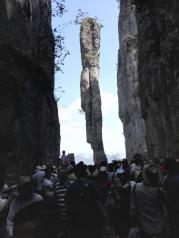 游玩恩施大峡谷,须翻越四座山。排队乘上缆车,大约10分钟的样子。拄着拐杖,开始了第一,第二,第三个山头的翻越,来到最经典的“一柱香”。惊艳大自然的鬼斧神工。一共四座山,耗时四个多小时,再乘上电动扶梯,回到地面。 除了大峡谷外,最大的景观特色是两岸典型而丰富的喀斯特地貌:有天坑,有地缝,有天生桥,有溶洞(200多个),有层层叠叠的峰丛,还有近乎垂直于大峡谷的大断崖。