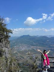 我们去恩施大峡谷的时候蓝天白云,天气晴好。云龙地缝有崎岖润湿的栈道,飞珠溅玉的瀑布,汹涌澎湃的内河,陡峭嶙峋的山壁,空气仿佛清新的好像是甜的。但是我去年游过重庆的金刀峡,金刀峡毫不逊色,更长更幽深,所以地缝对我来说没有特别大的吸引力。七星寨对我这种经常爬山的来说,不算特别累。喀斯特地貌非常壮观,真是大自然的鬼斧神工。个人最喜欢的经典是“迎客松”和“绝壁栈道”,特别是站在绝壁栈道上,脚下是万丈悬崖,远处是一大片田园牧歌般的美景和苍茫的大山,还有一条蜿蜒的清江。有的人说,恩施大峡谷不怎么样,但是我很喜欢,雄伟大气,一步一景,一定要在晴天去一次,远处的美景也是一绝。小提示:体力不好的建议坐滑杆、索道