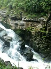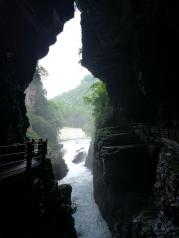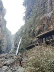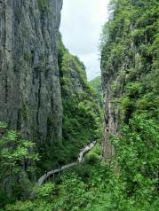 建始石门河虽然是一条在建始境内流域并不宽广的小河,但它已经在历史的长河中打磨出了美丽的诗篇,而隐藏在其峡谷中的惊世骇俗的自然风景,更是一段妙趣横生的山水画廊!走近石门河,穿行在历史的厚重和现实的旖旎山水风光之中,慢慢咂摸,细细品味,竟胜过人间仙境!到恩施旅游,除了大峡谷是必去的景点,我们一干人等都认为石门河是很值得去一游的,景点离恩施城大概要二个小时的车程(这里的高速最高也就80公里/小时),我们是周二去的,整个景区的游人不多,河是在一个很长很深的山谷底,峡谷共有5.8公里长,除了进入峡谷那小段路上上落落稍为辛苦点外,其余走的都是修建在悬崖峭壁边上的栈道,平坦易走。