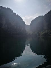 座船游览大清江5个小时,离开码头时阴天,目睹了两岸山峰上镶嵌着的云朵,颇有朦朦胧胧的意境。但随后下起小雨,幸运的是不久雨停太阳高照,蓝天白云下则是另外番风景。船到蝴蝶峡后掉头,原路返回。值得一玩!
