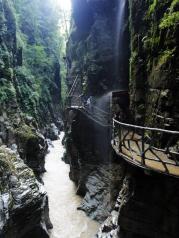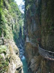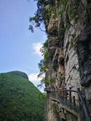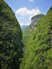 建始石门河,以为是河,结果是沿着峡谷走了六公里,不过风景很好,值得一看,山与水结合,山_险峻,水_清澈,意境优远,尽管走得有点累。整个景区人不是很多,但景色迷人,空气清新,绝壁栈道绵延起伏,峡谷陡峭,河水冰凉刺骨,是真正亲近大自然的好去处