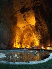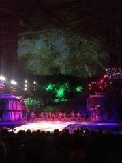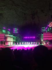 腾龙洞确实很壮观,关键是很凉快很凉快很凉快,本来已经出洞的我又进洞子里乘凉。但是注意里面温度只有12度,坐下来看表演还是有点冷。表演一定要在前排看,本来以为激光秀远一点无所谓,结果远了根本看不到台子上面的人跳和激光之间的关联。在前面水雾都会很清晰。