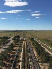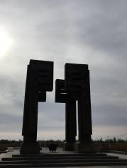 二连浩特国门在二连浩特市友谊路尽头,很新的一个景区,还在不断完善中,门票50元,门口到国碑处两公里,所以还得买10元往返票,慢慢走过去也可以,有四块碑,一块是最新的,在碑那里往前看,可以看到蒙古的扎门乌德市,远远看去像个村子。离碑大约两米处是铁轨,经常有运货车开过,还是值得一游的。