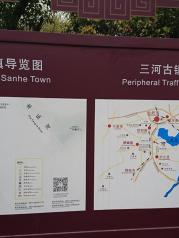 三河古镇合肥市的5A级景区,特色是水乡风情和徽式民居。从合肥市内40多公里,旅游专线可以到达,挺方便的。入口有两个,北边的游客中心和中间的大捷门,因为景区本身也不是很大,从哪边进都可以。下了旅游专线,大概走10分钟就到达入口了。我走的北边,有很大一片停车场。入口有“三河古镇”的牌楼,