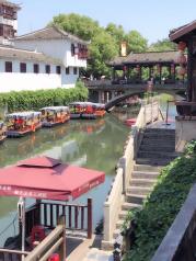 三河古镇古没想到这样的景点会有能那么多的人,整个古镇占地面积比较大,小桥流水人家,郁郁葱葱,河上还有游船。古镇里边吃的东西很多,相当多的都是卖三米饺河