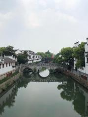 三河古镇五一节假日去的三河古镇,没想到这样的景点会有能那么多的人,整个古镇占地面积比较大,小桥流水人家,郁郁葱葱,河上还有游船。古镇里边吃的东西很多,相当多的都是卖三米饺河,