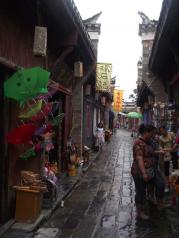 三河古镇出车站向右一直走就到达三河古镇牌楼景区,不需要买门票。一共四条古街,没有很浓的商业气息,都是当地的手工作坊:各种辣酱、豆制品、“孔明扇”比较有特色是纯手工艺品。