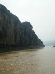 瞿塘峡是长江三峡的起点,起自奉节白帝城。入口处称为夔门,两岸崖壁直立,很是雄峻,有夔门自古天下雄之说。船至此处,可靠岸游览白帝城。我们的游船慢慢逼近了瞿塘峡,我是看着手机上的导航知道接近瞿塘峡了。