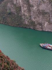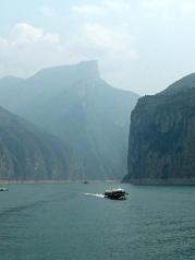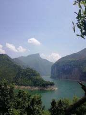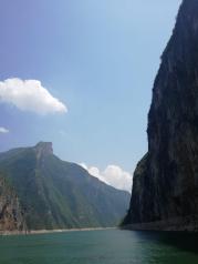 在宜昌返回重庆的游船上,游览到长约八公里的瞿塘峡,也就是人民币背面的景色图,狭窄悠长,山的俊美,水的绿色,交相呼应,十分美丽