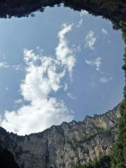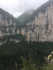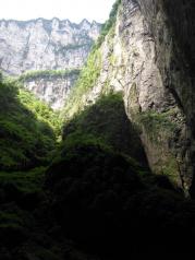 取票很方便,就是天坑累死人啊。从奉节去天坑的路上风景很好,有很多观景台。天坑值得一看,但就是个人得体力好,2800级台阶,准备根登山杖很有必要,费膝盖啊!在下了观光车不久和一半的时候有喝水吃饭的地方,请一定在这两个地方解决吃喝,轻装前行!这两个地方和景区入口都有厕所!天坑是几座山峰间凹下去的一个椭圆形大漏斗。坑口地面标高1331米,深666.2米,坑口直径622米,坑底直径522米。坑壁四周陡峭,在东北方向峭壁上有小道通到坑底。