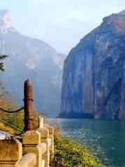 瞿塘峡又叫夔峡,是长江三峡之首,夔门近江两岸高山壁立如削,恰似天造地设的大门。峡中水深流急,素有“夔门天下雄”之称。三峡大坝建成蓄水后,瞿塘峡虽然已没有那种险关的气势了,乘船仍能感受其气势雄伟。