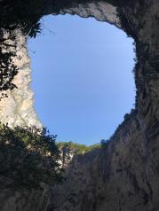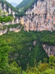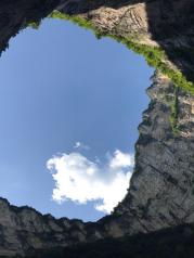 跟全家人从石家庄千里迢迢来到小寨天坑景区,就是为了游览这个天坑地缝。这个天坑走下去还挺轻松的,但上来却要花费很大的体力。天坑底部有一条暗河,植被生长的很茂盛,什么叫坐井观天,到了这里你亲自体验一下就知道了。