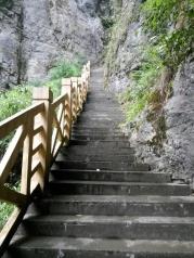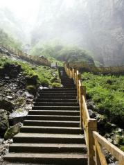 取票很方便,就是小寨天坑累死人啊。从奉节去天坑的路上风景很好,有很多观景台。天坑值得一看,但就是个人得体力好,2800级台阶,准备根登山杖很有必要,费膝盖啊!在下了观光车不久和一半的时候有喝水吃饭的地方,请一定在这两个地方解决吃喝,轻装前行!这两个地方和景区入口都有厕所!天坑是几座山峰间凹下去的一个椭圆形大漏斗。坑口地面标高1331米,深666.2米,坑口直径622米,坑底直径522米。坑壁四周陡峭,在东北方向峭壁上有小道通到坑底。