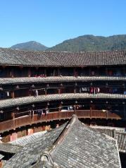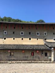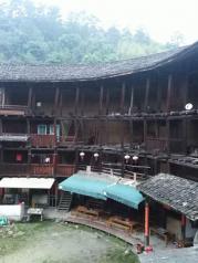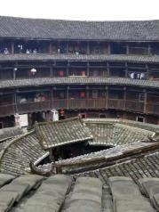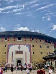 福建土楼风景区,闻名遐迩。怀远楼是其中最大的一个土楼。 当时福建土匪猖獗,老百姓就建造了这样城堡式的建筑。里面可以住几百户。有水体,可以储存粮食。