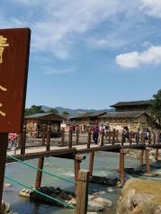 从厦门市区到南靖云水谣景区,53公里山路弯弯,加之路面整修限行,颠簸不断,历经3个半小时,终于到达。进入景区,映入眼帘的如画风光,让一路疲惫烟消云散。在不时飘着细雨的天气里,仰望着云雾缭绕的青山,沿着溪流慢步在景区的鹅卵石小路,真实感受到云水谣这个名字的诗情画意。怀远楼、和贵楼、古榕、小桥流水、透着古朴风韵的客栈和餐馆,真难想象电影摄制组怎样找到这样秀美的村庄。