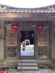 二月来南靖土楼游玩,其中怀远楼位于梅林镇坎下村东部,建于1905~1909年,是建筑工艺最精美、保护最好的双环圆形土楼,堪称传统民宅建筑艺术的佳作。怀远楼是一座“斯是室”为精巧秀气“四架三间”上下堂建筑,占地190平方米,室内雕梁画栋,古朴天然,对联横匾,书卷气浓。堂上悬挂的横匾刻着苍劲有力的行楷“斯是室”大字,两边柱子上有副对联,上联是“斯堂讵为游观计敦书开耳目”,下联是“是室何嫌隘惟思尚德课儿孙”。在上厅,又有对联“书为天下英雄胆,善是人间富贵根”、“世间善事忠和孝,天下良谋读与耕”。在外门楼,也有一副联“读书教子绍谋远,礼让传家衍庆长”,横批是“诗礼堂”。