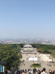 西樵山风景区位于佛山市南海区的西南部,山上自然风光美轮美奂。我们坐的环保车上下山的,也有很多私家车开进来,山也不是很高,本来想选那种小的旅游观光车那样的,结果不知道是因为人太多还是怎么样,被迫坐了那种大一点的空调巴士,不爽不爽,里面几个景点有南海观音,四方竹林,时间关系只去了南海观音,看起来还是挺壮观的。