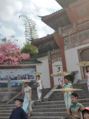 南海影视城风景很好,主要分为三大主题:一是天朝宫殿区、二是江南水乡区、三是旧香港澳门街区。我们来此主要是看些影视拍摄的场景,看看建筑物及拍照。苏州街和香港街设计挺好的,最有特色是桃花,好逼真,摸上去才只知道是人工合成的。