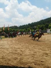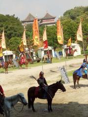 南海影视城很适合小朋友去见识见识,小朋友玩得不亦乐乎,认识了很多古代的名人,特别是看了三英战吕布的表演,我小孩本来已经看过电视的情节,再加上现在看了真人表演,以后让他忘了也难,哈哈。工作人员的马技真是非常好,小孩回家还不停说着原来还能这样子骑马,有骑马这么利害的人,赞。我们骑了两次马,30元/次(一圈),加上小孩,就60元/次,有点贵,里面卖的东西也是贵。给钱试穿古装,照相挺漂亮的,热得要**,小孩照完相了还不肯脱,真怕中暑。另外就是场地好大,带着小孩真的很累,但还是值得。