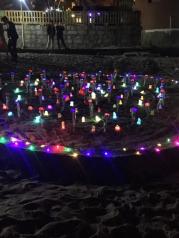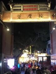 傍晚来到南普陀寺,不用门票,地点就在厦大北边。除了参拜寺庙,一定要爬爬后山练练身体,可眺望市区街景,厦门双塔的地标一览无遗,美不胜收。寺旁有块大石,大伙围着它丢硬币许愿,若硬币停留在石上,则愿望成真。瞧,大伙都很努力丢着.... 下山时,已天黑,寺庙打着灯,此时仅有稀稀落落的游客,真是十分写意...