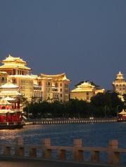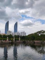 在厦门火车站坐地铁到集美学村站下,途中地铁经过大海,像是在海上穿梭,感觉是坐快艇了,出地铁后记得往地铁站后面走,在岸边吹吹海风,心情舒畅。然后选择晚上在集美村逛逛,那灯火辉煌的建筑倒影在湖上,美丽至极,直叫人人流连忘返。