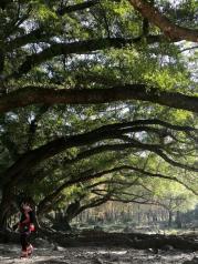 二月去杨家溪主要是看古榕树群,位于霞浦牙城的渡头村,该地地处北纬27度,为全球纬度最北的古榕树群。最大一棵树干周长12.6米,冠幅直经51米,素有“榕树王”之称。还有万株连片的枫树林,为江南面积最大的枫香林,但今年没出现火红色,且许多已枯萎落地。