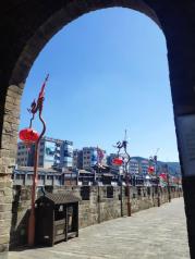 东山岛风动石的其奇妙之处就在于它前后左右重量平衡极佳,大风吹来时,石体左右晃动,但倾斜到一定角度就不会再动了,故称风动石。石为花岗岩石质,据说人力也能晃动风动石。如果找来瓦片置于石下,选择适当的位置,一个人就能把这硕大的奇石轻轻摇动起来。此时,瓦片“咯咯”作响,顷刻化为粉末。 景区挺大,车在收费停车场停下,还要走近一公里的海岸,做电瓶车一人两块。走走逛逛下来得两个多小时,木栈道风景独美,景区订帆船票玩送大门门票哦。进门就是古城墙遗址,一路上去博物馆,庙宇,碑林什么的,可玩可看。