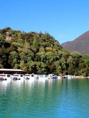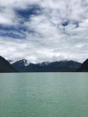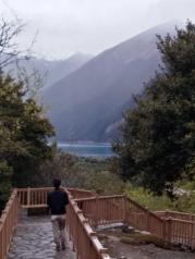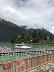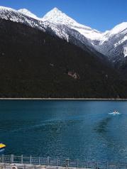 抵达巴松措,藏语意为“绿色的水”,隐于远离城镇的山沟沟里,门票120元 汽车开进去绕了很久,正如其名,巴松措的湖水是蓝绿色的,很像丽江的蓝月谷青山如黛,将一池碧水拥入怀中,不由想起很久以前听过的一首歌:湖水是你的眼神,梦想满天星辰。可乘快艇泛舟湖上,约50元学习网红,拍了张牵手照。。。