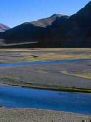 从新藏线进入阿里地区一定会经过狮泉河,对它的见识在于进入托林镇和古格王国的那一路,特别在托林寺旁边,周围是山峰,一条狮泉河绕成而过,傍晚时分特别美。