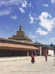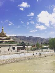 拉卜楞寺位于甘南藏族自治州临夏河县,是藏传佛教格鲁派六大寺院之一。汽车开入甘南地区,天气就变得与西北不太一样了,无论是地貌还是民居建筑又或是天空都有明显的对比。
