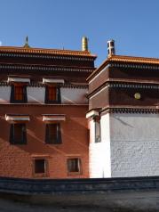 拉卜楞寺是藏传佛教格鲁派六大寺院之一,被世界誉为“世界藏学府”。寺主是第六世 嘉木样呼图克图,其他领导人包括八大堪布、四大赛赤。拉卜楞寺在历史上号称有108属寺,是甘南地区的政教中心,拉卜楞寺保留有全国最好的藏传佛教教学体系。整个寺庙现存最古老也是唯一的第一世嘉木样活佛时期所建的佛殿,是位于大经堂旁的下续部学院的佛殿。游览的时候,适逢一众僧人在大殿里面诵经,那抑扬顿挫的语调很有一种醍醐灌顶的气势~