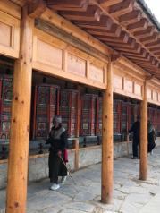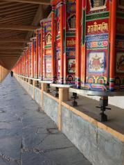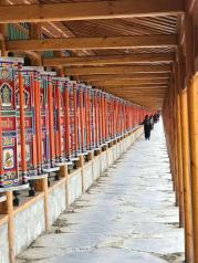 拉卜楞寺拥有全世界独一无二的转经长廊,共计2000多个转经筒,每个转经筒触摸一次,最少的一个小时才可以转完一圈。每天都有许多当地藏民和游客围着转经长廊走,为家人祈福。