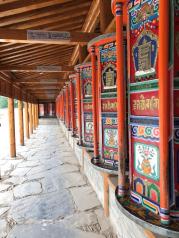 拉卜楞寺是藏传佛教格鲁派的著名寺院。是甘南地区的著 名寺院。这里有2000余个转经筒。据说是世界上最长的转经长廊。转经筒已经饱经风霜,有的已经斑驳粗糙,古老而神圣的转经筒总会在信徒刚劲有力的右手的推动下,沿着顺时针不停的转下去,带来平安与圆满。