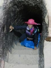 敦煌鸣沙山——先说几个经验,一定要租鞋套,别买一次性的鞋套,质量很差,骑骆驼都把一只脚的弄破了。后面走起路来很费劲。骑骆驼很好玩,100块包来回,应该体验一下,但要注意安全。骆驼骑的过程还是双手把住前面把手。我前面的骆驼由于前面的人在骆驼上挂了个塑料袋,有稀里哗啦的声音,把骆驼搞毛了,差点摔下来。牵骆驼的大声斥责,不让挂塑料袋之类的东西。因为骆驼是靠驼铃声之指路,有其他干扰容易乱跑,骆驼之间是绳子连起来的。一个毛了,其他的人也遭殃。 爬到鸣沙山顶上找月牙泉更好。骑骆驼上去别着急下,不划沙也可以爬上去照相。我们就是着急下来,没能照到比较好的角度。月牙泉在高处照才漂亮。建议买个脖套,帽子,手臂套,