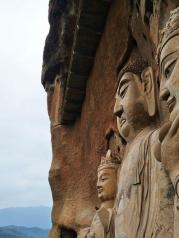 麦积山石窟--中国四大石窟之一 也许是把它放到最后才观,感觉它才是最值得一看的石窟吧.... 1600多年历史变迁,历经灭佛造佛,火灾地震,风雨侵蚀,却保存至今的东方艺术瑰宝。一百多米高的砂砾岩质的山体,四面垂直陡峭的崖壁,在西起的秦岭山脉拱卫中显得有些突兀。它会不会是未知外星文明修建的呢?也有些像农村夏收后的麦垛,所以才叫“麦积山”吧? 这里跟其它三大石窟相比,佛像少了几分庄严肃穆,多了几分温婉与安详,显得温暖而亲近。这里有被称为“东方微笑”的小沙伲憨厚稚气的笑容,更有被誉为“东方蒙娜丽莎”的西魏文皇后写实佛像(不让拍照,网上搜了一张)。来到这里,被延续一千多年的微笑包围,你能会心一笑吗?