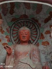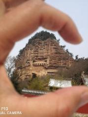 麦积山石窟就像一个大麦垛子,和几大石窟比,虽然开凿时间晚,但这个比较有特点,这个季节人比较少,前些天刚下完雪,从景区门口到石窟有4公里吧,因为雪的原故,景区电瓶车不开,要走到石窟要半小时吧。