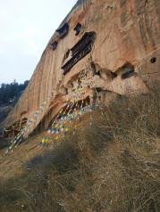 马蹄寺——古人的智慧真是无穷无尽啊,峭壁上修建寺庙,而且可以经历那么长时间的风风雨雨。佩服。峭壁上好多大小不一的洞,应该是以前施工留下来的,隐约可以看到以前施工的缩影。