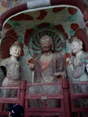 麦积山石窟——著名的四大石窟之一,虽然没有其他石窟有名,但是还是很有特点的。这个是以民间筹资修筑为主,佛像是木胎泥塑,并且有绘画彩绘,泥塑的人物形态栩栩如生,丝绸的柔软流动性都表现出来。而且,我再次强烈建议,一定要请谅解,而且要请能跟着你转一圈石窟的讲解员,不要那种仅仅给你讲画廊的画的假讲解员。这个一定要问清楚。来了听了之后,真的是不虚此行。还有我挺幸运的,去的时候是淡季,而且正在搞活动,凭学生证登记后免票。