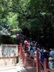 甘肃省天水的麦积山石窟,是著名的世界文化遗产,中国四大石窟之一,中华文明的魁宝。 2018年8月,虽然是艳阳高照38度的高温天气,可是阻挡不住旅游者参观的脚步。在景区里,游客是人挤人,非常的热闹。大家都要一睹世界文明的魁宝。 麦积山石窟雄伟壮观,非常震撼人心!