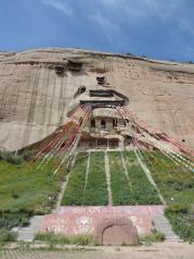 马蹄寺石窟非常壮观。石刻的楼梯直上直下80度左右。爬上去需要体力,爬下来需要胆量。问题是只能跟团或包车或自驾游,里面景点相互之间离得太远。上中下观音寺离买票的地方20几公里。